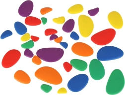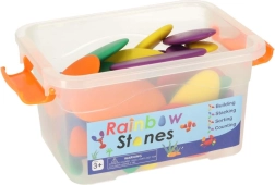 Šis izglītojošais komplekts ir ideāli piemērots pirmsskolniekiem un jaunāko klašu bērniem. Gludi plastmasas akmentiņi košās krāsās aicina gan uz brīvo spēli, gan vadītām aktivitātēm: bērni var skaitīt, salīdzināt izmērus, šķirot pēc krāsām un veidot attēlus un rakstus pēc kartēm vai savas fantāzijas. Praktiska kaste atvieglo visu detaļu glabāšanu vienuviet.
