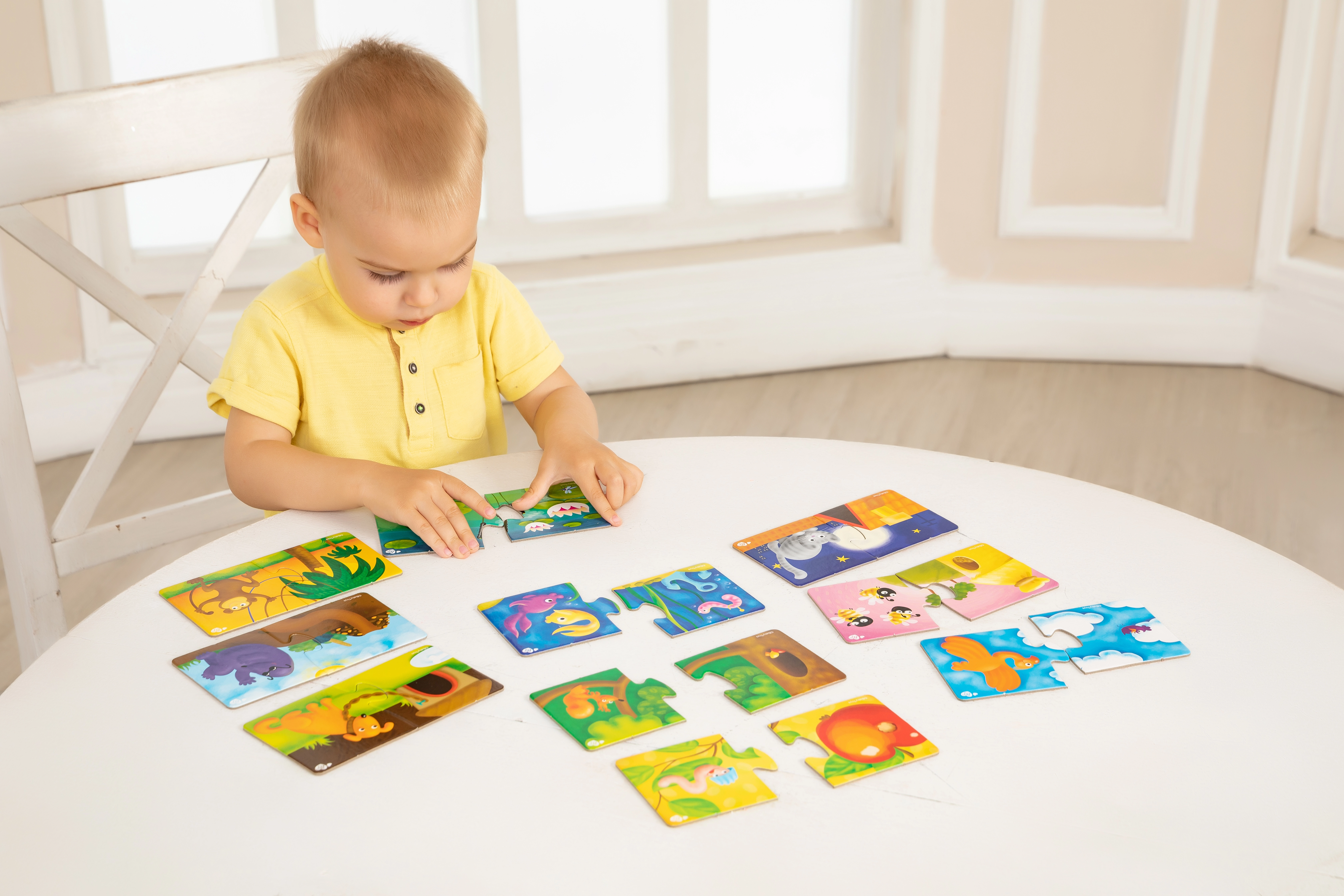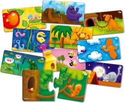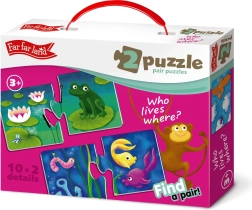 Far Far Land puzle ir ideāla izglītojoša rotaļlieta bērniem no trīs gadu vecuma. Šajā komplektā ir 10 puzles attēli, katrs sastāv no divām daļām – uz vienas ir dzīvnieks, uz otras tā mājvieta. Spēles laikā bērni apgūst dažādu dzīvnieku un to dzīvesvietu atpazīšanu, tādējādi attīstot šķirošanas un kombinēšanas prasmes.