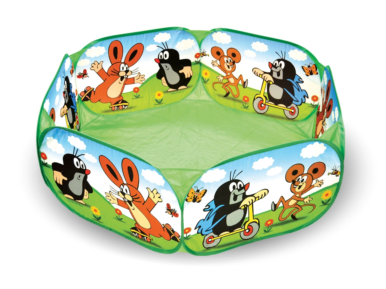 Bērnu rotaļu aploks ar iemīļotā varoņa Kurmiņa motīvu ir ideāli piemērots spēlēm un izklaidei. Universāla rotaļlieta bērniem, kuru var piepildīt ar bumbiņām vai iemīļotām rotaļlietām.