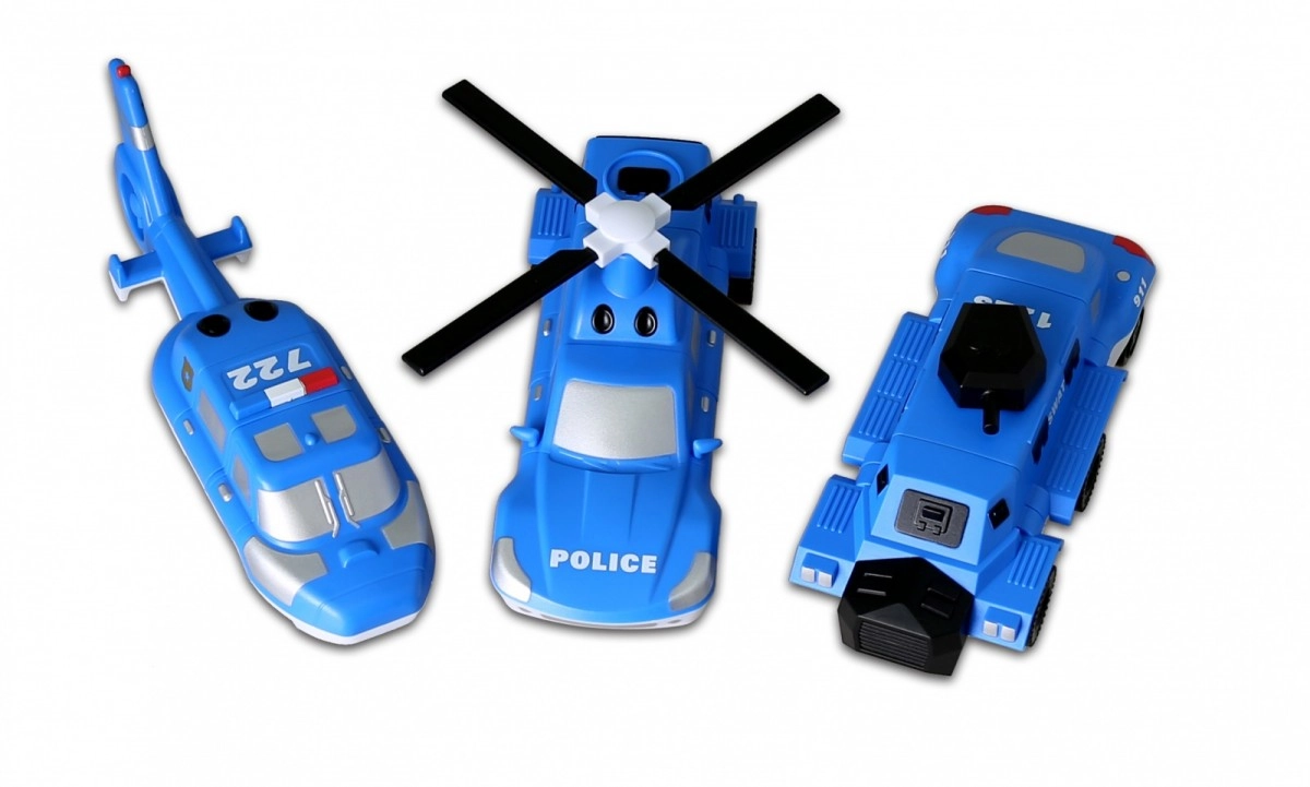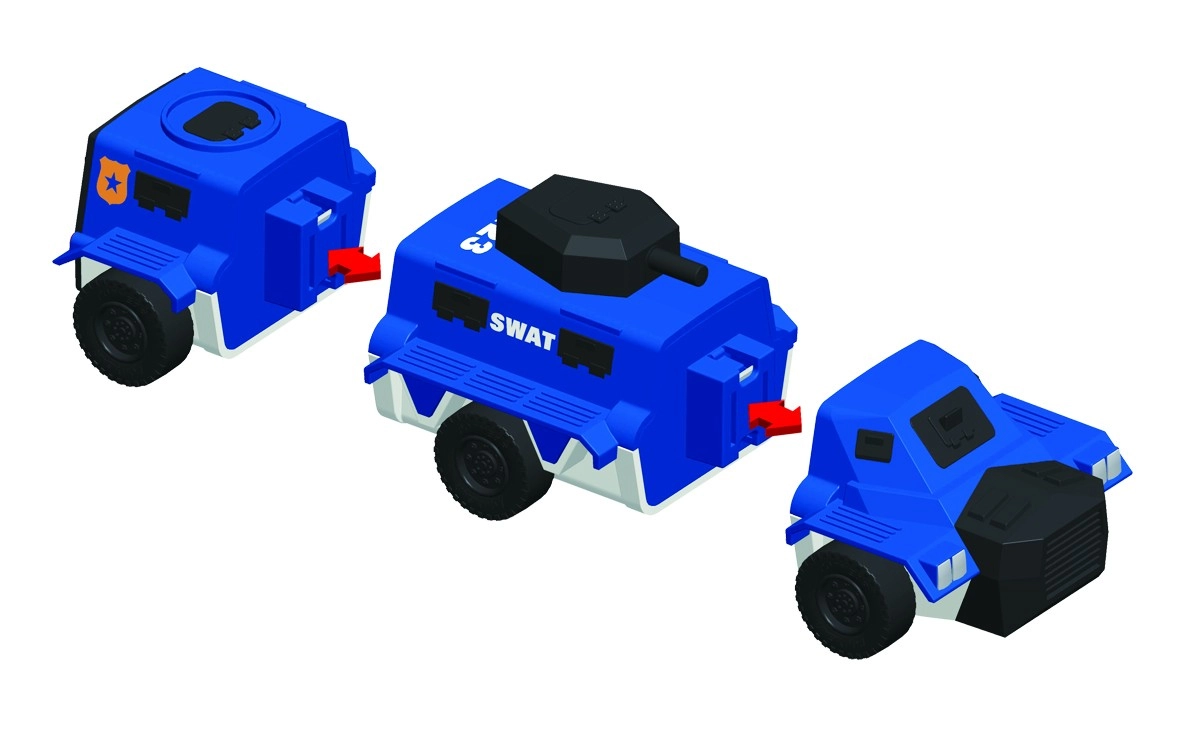 Salieciet policijas auto, helikopteru vai SWAT speciālās vienības transportu – un pēc tam brīvi kombinējiet tos desmitiem variantu.
