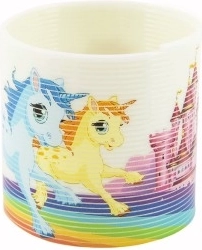 Izklaidējoša plastmasas spirālveida rotaļa ar vienradžu motīvu iepriecinās gan bērnus, gan pieaugušos. Pateicoties elastīgajai konstrukcijai, tā var “staigāt” pa kāpnēm, veikt trikus un ir lielisks stresa mazinātājs. Kompakts diametrs 6,5 cm un košas krāsas padara to par ideālu dāvanu bērniem no 3 gadu vecuma.