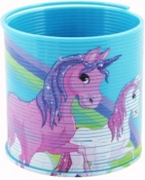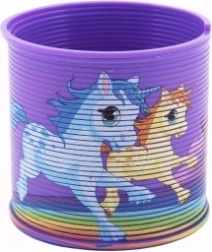 Šī krāsainā spirālveida rotaļa ar mīlīgiem vienradžiem ir klasika, kas nekad neapnīk. To ir viegli izstiept, tā plūdeni viļņojas, un pateicoties kvalitatīvai plastmasai, ir droša ikdienas rotaļām. Lieliski izklaidē mājās, ceļā un bērnu ballītēs.
