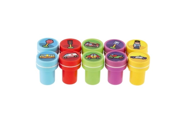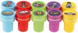 Jautrs bērnu zīmogu komplekts ar auto motīviem mazajiem radošajiem prātiem. Iepakojumā ir 10 gab. pašspiedošu zīmogu plastmasas izpildījumā, ideāli radošām aktivitātēm, izkrāsošanai un stāstu veidošanai. Vienkārša lietošana bez atsevišķas spilventiņa nepieciešamības un piemērots no 3 gadu vecuma.