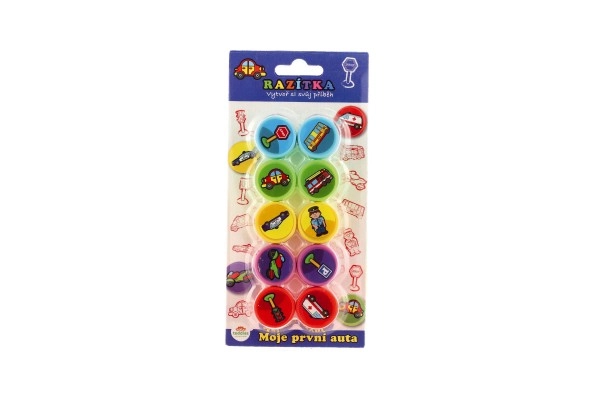 - 10 dažādi zīmogi ar auto motīviem daudzveidīgai radošai darbībai.