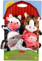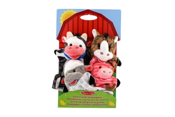 Komplektā ietilpst četras fermas rokas lelles: govs, aita, sivēns un kumeļš, ideāli piemērotas pasaku stāstu veidošanai.