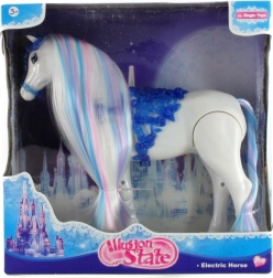 Jautrs staigājošs zirgs bērniem no 3 gadu vecuma, kas kustas un izdod reālistiskas skaņas. Izbaudiet riksēšanu un zirga īdēšanu, nospiežot pogu. Rotaļlieta ir ar praktiskiem izmēriem spēlēm mājās un sniedz daudz interaktīvas izklaides.