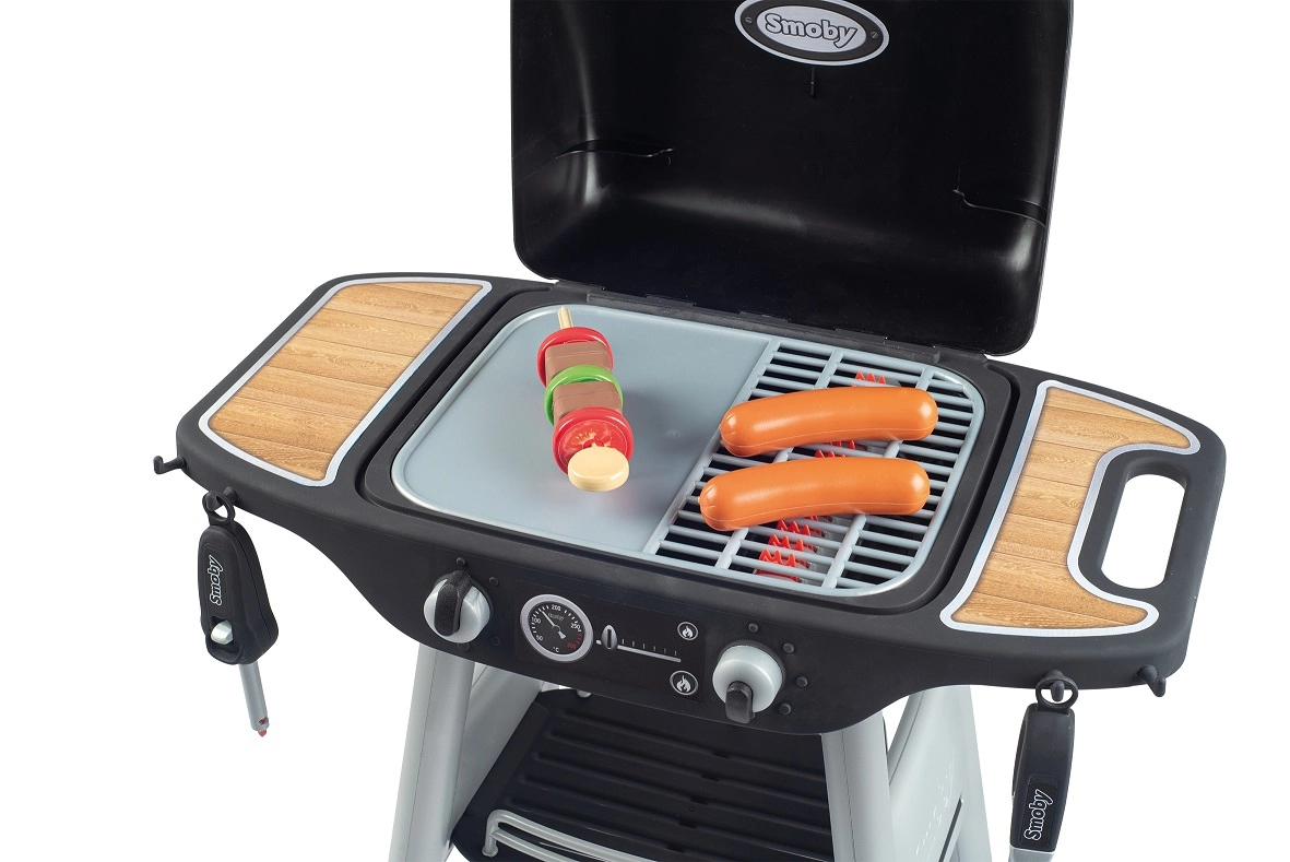 Bērni var izbaudīt autentisku grilēšanas sajūtu, pateicoties liesmiņām, kas imitē uguni, un skaņas aizdedzinātājam.