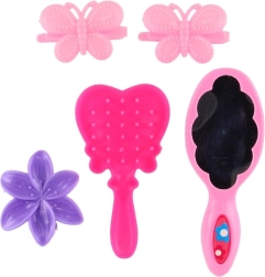 - Pilns piederumu komplekts – spogulītis, sprādzītes un ķemmīte veidošanai.