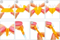 Īpaši veidoti papīra moduļi cieši savienojas savā starpā, tāpēc modeli saliksiet tīri un stingri, bez līmes vai šķērēm.