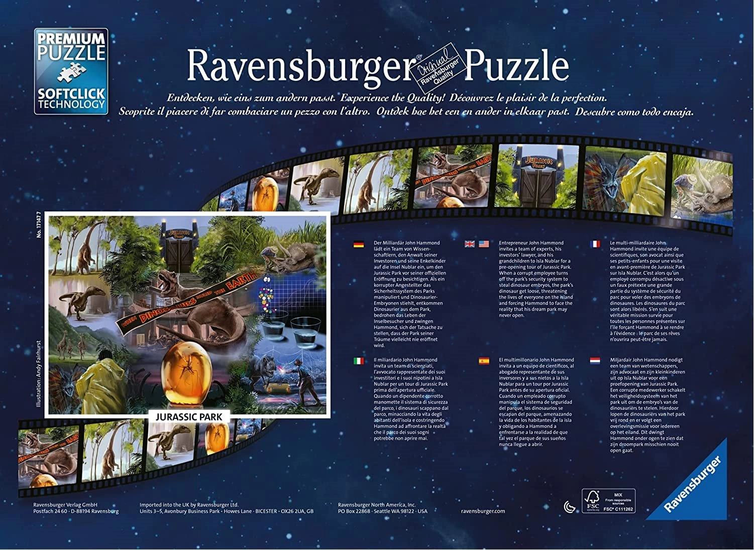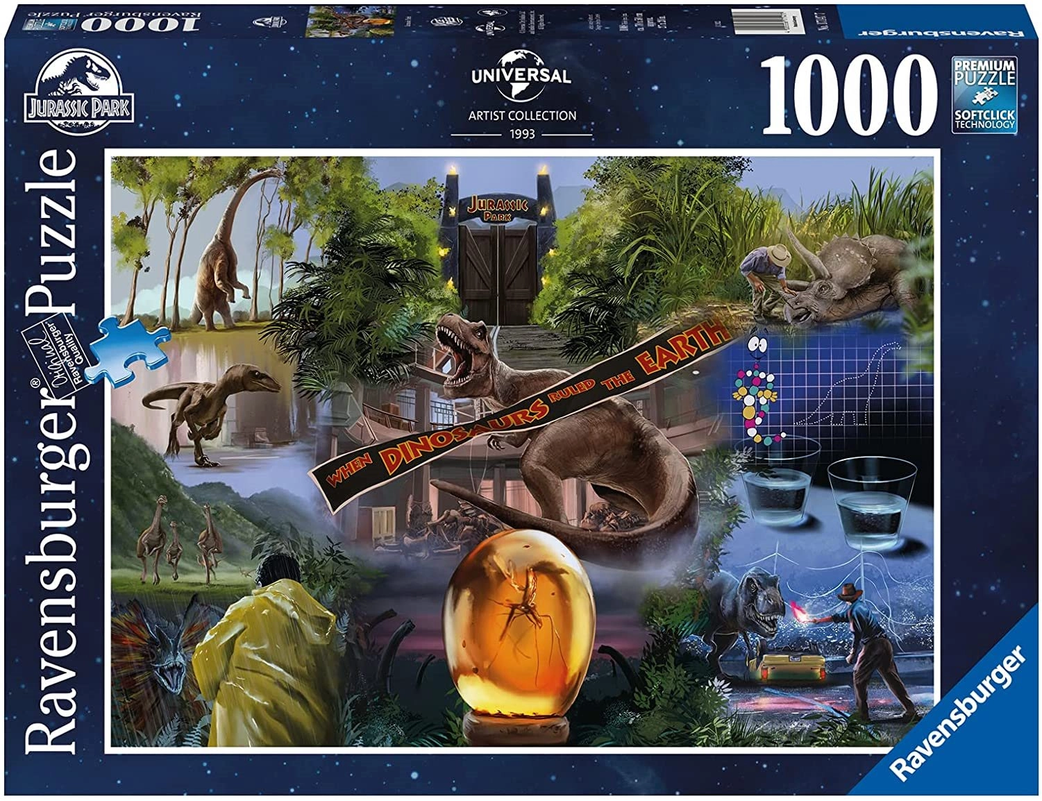 Ienirstiet dinozauru pasaulē ar ikonisko filmas Jurassic Park motīvu. 1000 gabalu puzle no Ravensburger ir pazīstama ar augstvērtīgu izpildījumu, precīziem izgriezumiem un patīkamu likšanas pieredzi. SoftClick tehnoloģija nodrošina, ka katrs gabaliņš bez piepūles un pareizi ieklikšķas vietā, savukārt virsma ar dabiska lina tekstūru minimizē atspīdumus un izceļ detaļas.