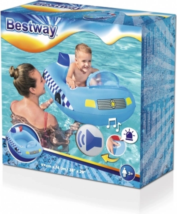 Šī zilā bērnu laiviņa, iedvesmota no policijas transportlīdzekļa, pārvērtīs katru peldēšanos piedzīvojumā. Pateicoties integrētajam skaņas modulim ar sirēnu, pietiek nospiest pogu, un mazais šoferis jau ir “izsaukumā”. Izturīgais vinila materiāls un ērta muguras atzveltne nodrošina stabilitāti un komfortu.