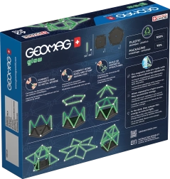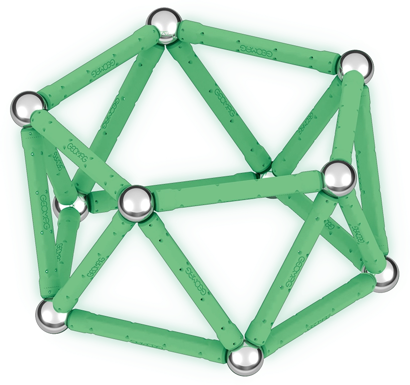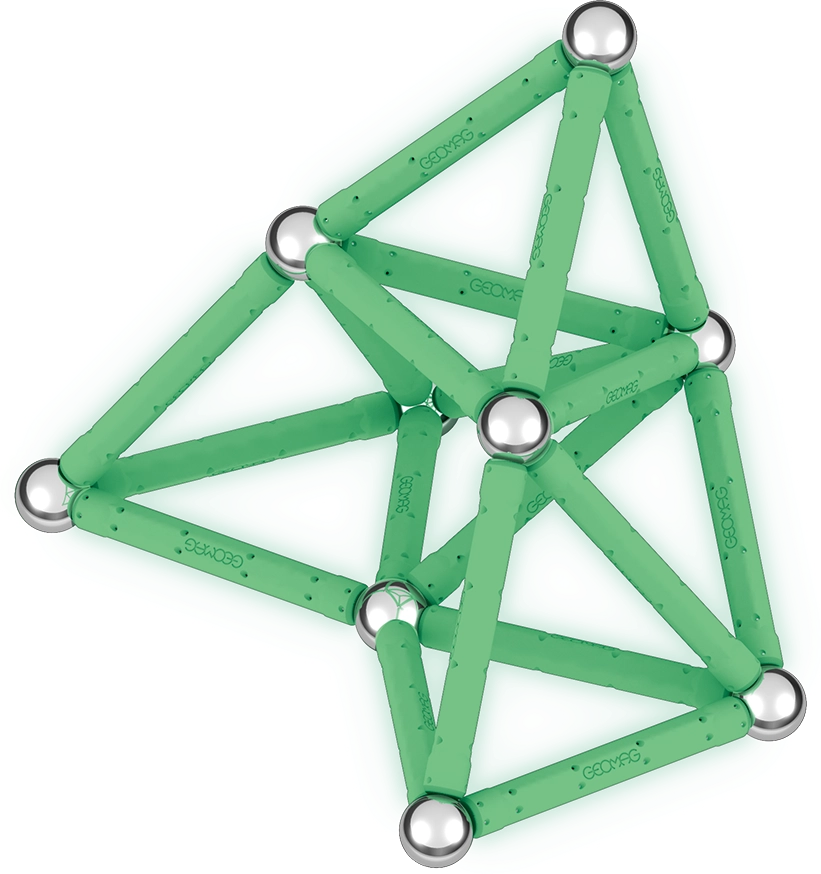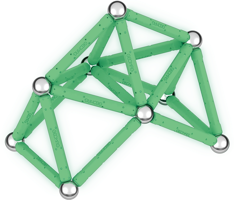 GEOMAG Glow ir oriģināls magnētiskais konstruktoru komplekts, kas ļauj veidot neierobežotu konstrukciju daudzumu, izmantojot magnētiskās nūjiņas un tērauda lodītes. Pateicoties fosforescējošajām detaļām, pēc apgaismošanas tumsā tavi modeļi skaisti mirdzēs – lieliski piemērots aizraujošiem eksperimentiem un pievilcīgai mācībai.