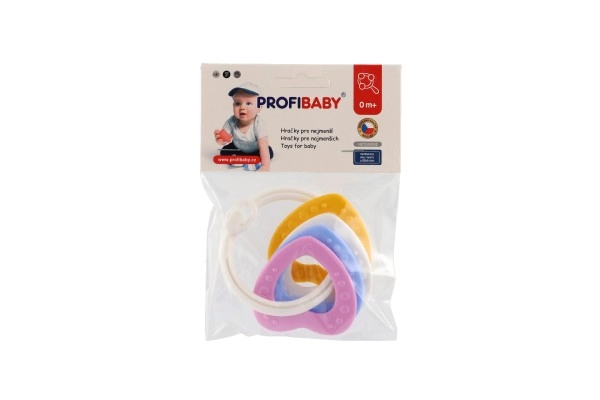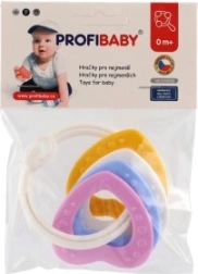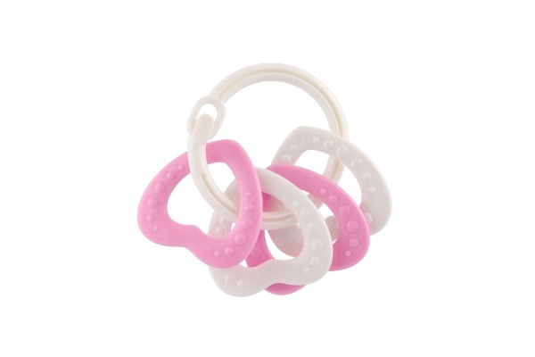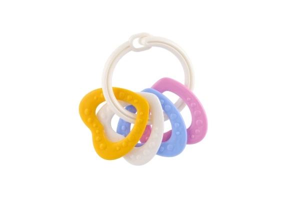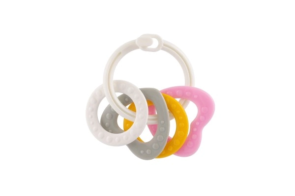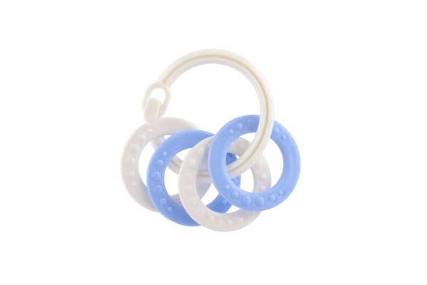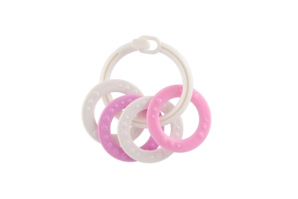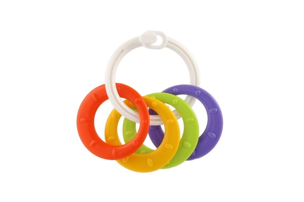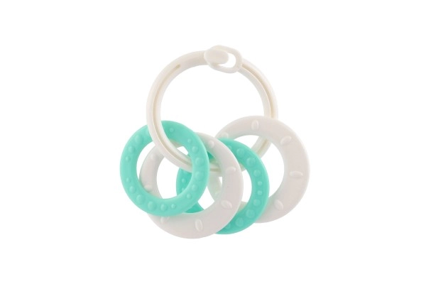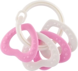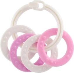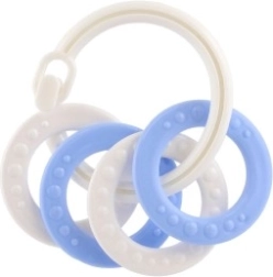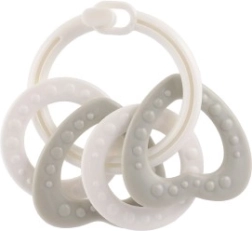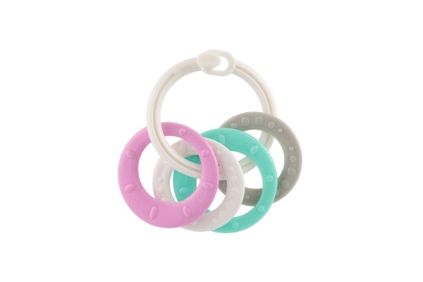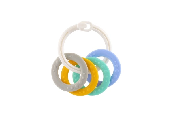 Piemērots bērniem no 3 mēnešu vecuma, šis košļājamo rotaļlietu komplekts satur krāsainus plastmasas gredzenus, kas ir ne tikai viegli, bet arī palīdz attīstīt sīko motoriku. Pateicoties daudzveidīgajām struktūrām un formām, rotaļlieta sniedz vairākus maņu stimulus, kas ir paredzēti bērna zobu šķilšanās periodam.