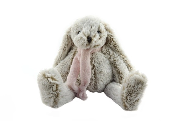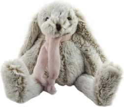 Mīkstais pūkainais trusītis Tosiek, apburošs pelēks trusītis ar rozā lakatiņu, būs lielisks pavadonis jūsu bērniem: