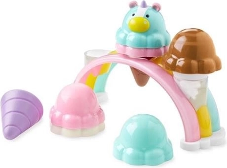 Bērniem patīk atklāt – un šis saldējuma komplekts ir pilns pārsteigumu. Vienkārši iegremdējiet bumbiņas aukstā ūdenī, un uzreiz parādīsies krāsainas mērces un dekori, kas pārvērtīs ikvienu desertu. Bumbiņu kraušana uz kornetiem dabiski trenē sīko motoriku un roku–acu koordināciju, bet rotaļas “pārdevējs saldējuma kafejnīcā” attīsta iztēli un komunikācijas prasmes.