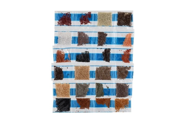 Krāsu leģenda un marķējumi uz audekla nodrošina precīzu vadību. Caurspīdīgi maisiņi un krāsu organizēšana atvieglo šķirošanu un vienmērīgu līmēšanu.
