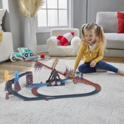 Pateicoties pārbūvējamām detaļām un slēdzim, vari noteikt, vai Tomass brauks pāri krītošajam tiltam vai zem tā. Moduļu daļas ļauj ātri mainīt maršrutu un būvēt jaunus apļus. Komplekts ir saderīgs ar lielāko daļu plastmasas THOMAS & FRIENDS trašu (izņemot koka sēriju), tāpēc viegli paplašināsi savu kolekciju.