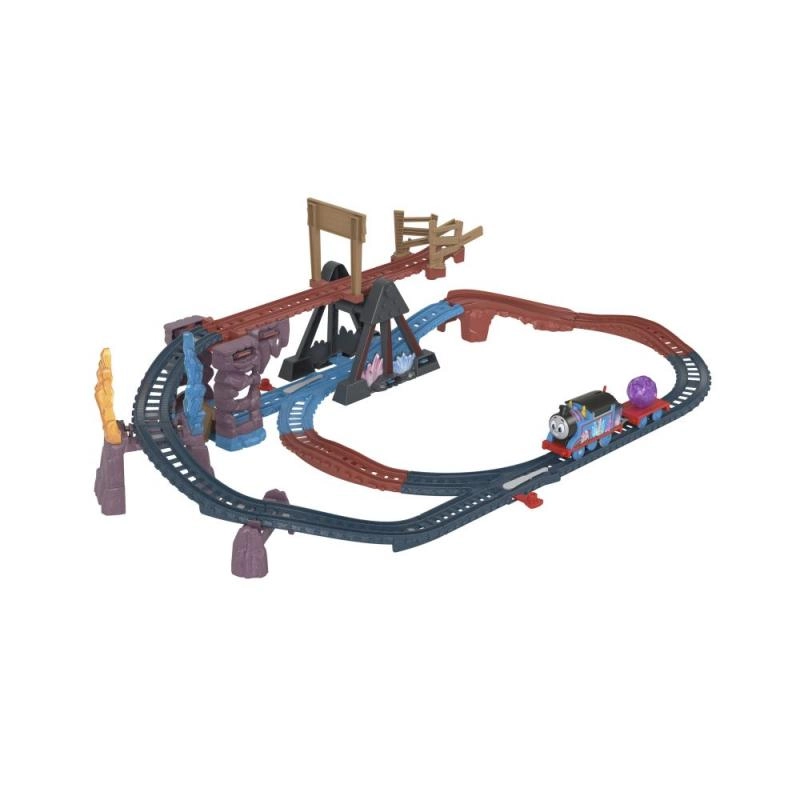 Dodies krāšņā kristālu piedzīvojumā ar Tomasu! Šis dinamiskais vilciena trases komplekts piedāvā daudzlīmeņu trasi ar krītošu tiltu, krustojumu un tematiskām “kristālu” detaļām. Ar vienu slēdzi uz Tomasa jumta lokomotīve dodas pa sliedēm un nogādā kravu alā.
