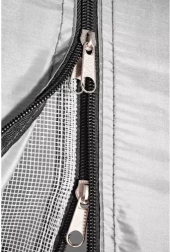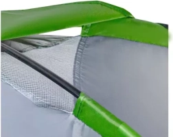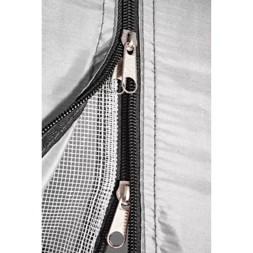 Telts ir aprīkota ar praktisku nojumīti, kas pasargā jūsu mantas no lietus. Moskītu tīkls nodrošina aizsardzību pret kukaiņiem un brīvu gaisa plūsmu. Pareizu ventilāciju veicina arī augšējais ventilācijas atvērums ar moskītu tīklu, ko var pasargāt no lietus.