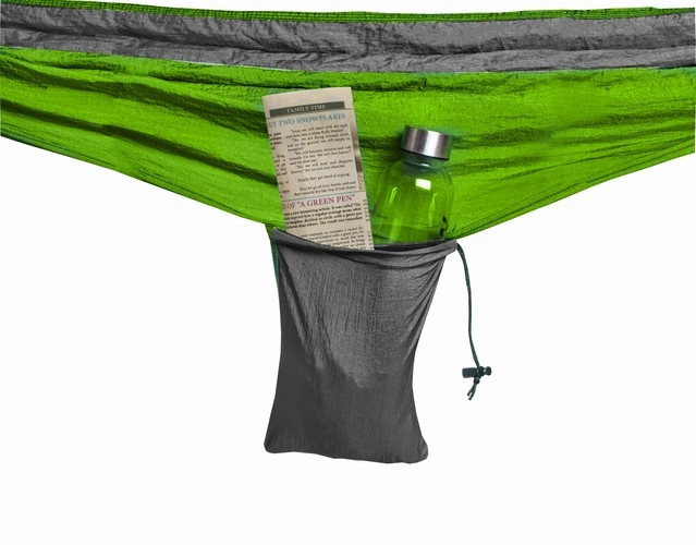Šūpuļtīkls ir aprīkots ar praktisku maciņu, kas atvieglo pārnēsāšanu – salocīts tas aizņem minimumu vietas un ietilpst pat nelielā mugursomā. Pēc izvēršanas maciņu var izmantot kā kabatiņu dzērieniem, telefonam vai avīzēm.