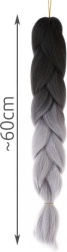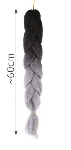 Augstas temperatūras izturīga šķiedra ir izturīga pret UV starojumu un augstām temperatūrām, ļaujot veidot ar fēnu, taisnotāju vai lokšķērēm tāpat kā dabīgiem matiem. Produkta specifikācija: melni–pelēka krāsa, sintētisks materiāls un aptuveni 60 cm garums.