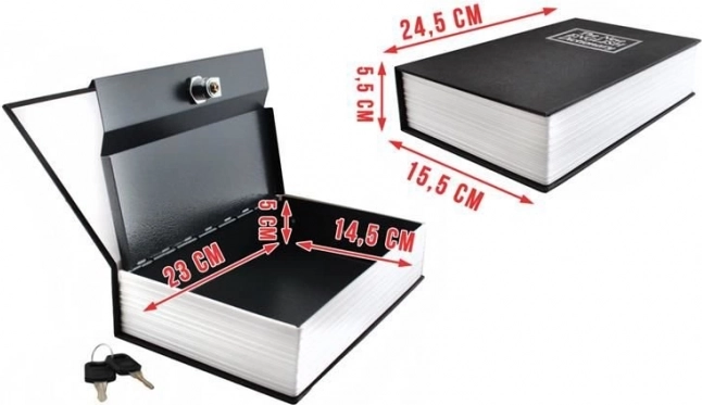 Glabājiet savas vērtslietas gudri un neuzkrītoši. Šī seifa grāmata ar reālistisku vārdnīcas izskatu plauktā pilnībā pazūd starp citām grāmatām. Ārējais vāks izskatās kā īsta grāmata, bet iekšpusē slēpjas izturīga tērauda kārba, ko aizsargā atslēgas slēdzene.