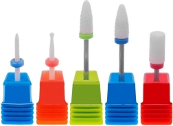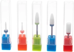 5 keramikas frēžu komplekts ir ideāli piemērots profesionāliem saloniem un mājas kopšanai. Keramika nepārnes siltumu, tādēļ darbā nerodas nepatīkama dedzināšana, vienlaikus tā ir īpaši izturīga un efektīva. Dažādas formas un graudainības pakāpes ļauj precīzi noņemt materiālu, mīkstināt kutikulas un izlīdzināt naga virsmu.