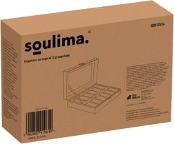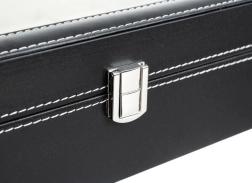 Stilīgā SOULIMA kārba apvieno uzglabāšanu, organizēšanu un prezentēšanu jūsu pulksteņiem un rotaslietām. Melnā eko āda ar baltu šuvumu izskatās grezni, savukārt caurspīdīgais stikla vāks ļauj pārskatīt saturu neatverot. Iekšpuse ir izklāta ar maigu, mīkstu materiālu, kas saudzīgi aizsargā vērtību virsmas.