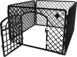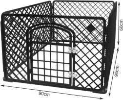 Meklējat uzticamu veidu, kā savam mīlulim izveidot drošu un ērtu vietu? Šis plastmasas aploks piedāvā universālu pielietojumu suņiem, kucēniem un sīkajiem dzīvniekiem. Ar izmēriem 90 × 90 × 60 cm tas nodrošina pietiekami daudz vietas brīvai kustībai, kamēr robustā PP un metāla elementu konstrukcija garantē stabilitāti un ilgmūžību.