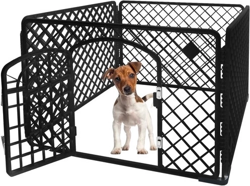 Praktisks un universāls aploks suņiem, kucēniem un mazajiem dzīvniekiem nodrošinās jūsu mīlulim drošu telpu mājās un dārzā. Pateicoties izturīgai PP plastmasas konstrukcijai un metāla savienojumiem, aploks ir stabils, izturīgs un viegli saliekams. Vārti ar drošu aizslēgšanu novērš patvaļīgu izkļūšanu, bet noapaļotie elementi palielina drošību lietošanas laikā. Ideāli piemērots treniņiem, atpūtai un mājokļa aprīkojuma aizsardzībai.