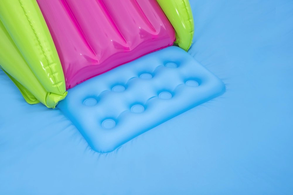 Uzpūšamais ūdens rotaļu laukums ir izgatavots no augstas kvalitātes PVC materiāla, kas nodrošina ilgu kalpošanas laiku un izturību pret sauli.