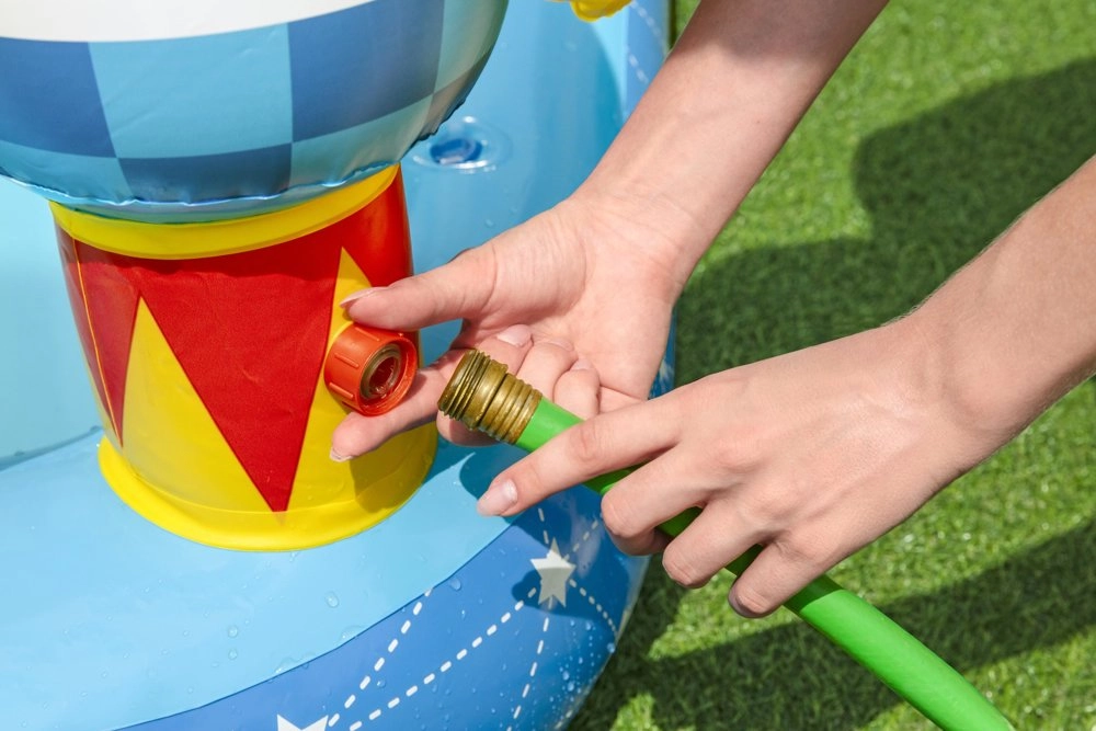 Uzpūšamais parks piedāvā baseinu, slidkalniņu, smidzinātāju un kosmisku riņķu mešanas spēli, kas nodrošinās izklaidi daudzām stundām.