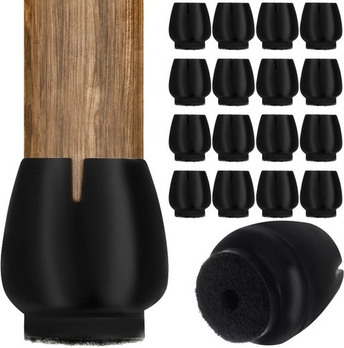 Melnas uzmavas krēslu kājām ar mīkstu filcu efektīvi novērš skrāpējumu un švīku rašanos uz grīdas un vienlaikus slāpē nepatīkamu troksni mēbeļu pārvietošanas laikā. Tās ir ideāli piemērotas virtuvei, viesistabai un terasei, kā arī noderēs viesnīcās, restorānos un skolās.