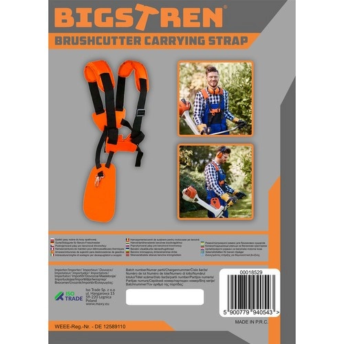 Regulējamā siksnu sistēma ļauj precīzi pielāgoties, tādējādi uzlabojot pievienotā trimmera stabilitāti un darba komfortu.