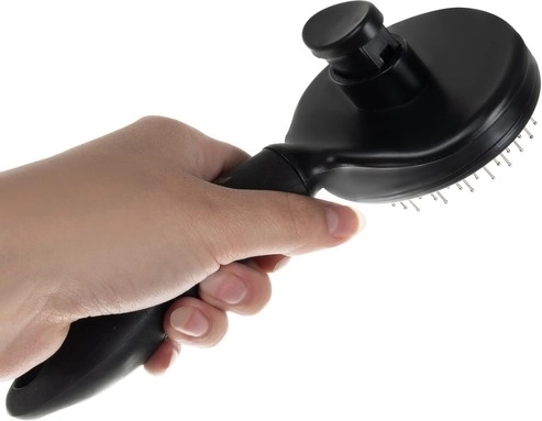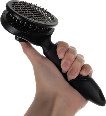 Pašattīroša spalvu birste nodrošina ērtu kopšanu jūsu mājdzīvniekiem, pateicoties ergonomiskam dizainam un efektīvai sistēmai, kas ar vienu pogas spiedienu noņem izkritušo spalvu.