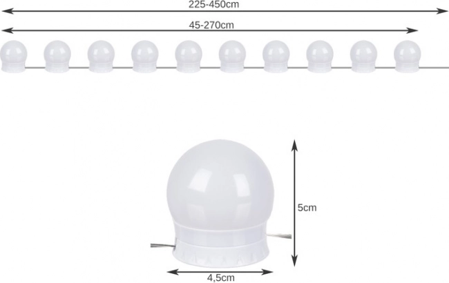 Izgatavotas no plastmasas, lai nodrošinātu ilgu kalpošanas laiku un izturību. 4,5 m kabelis ļauj izvietot gaismas ar atstarpi līdz 25 cm.