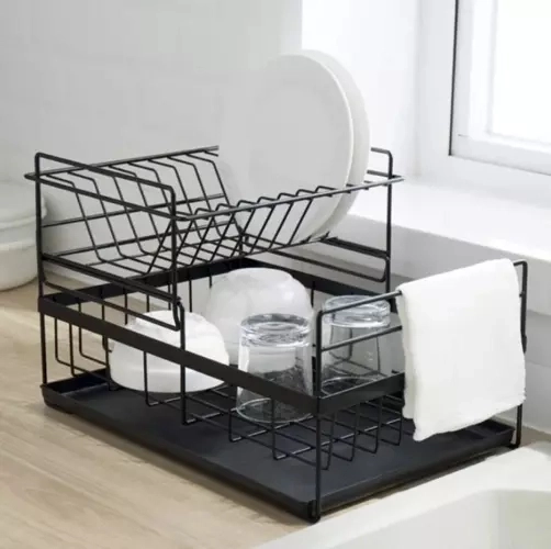 Šis divstāvu trauku žāvētājs efektīvi izmanto vietu uz darba virsmas: augšējais stāvs ietilpina līdz 9 šķīvjiem, apakšējais ir ideāli piemērots bļodām, glāzēm un krūzēm. Konstrukcija no oglekļa tērauda ar izturīgu pārklājumu ir izturīga pret mitrumu un ikdienas lietošanu, savukārt neslīdošās kājiņas nodrošina stabilitāti un drošību arī pie lielākas slodzes.