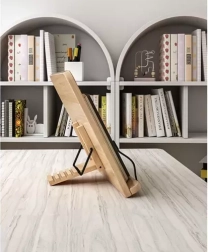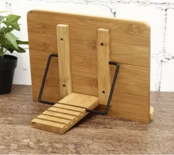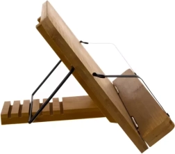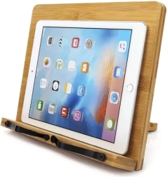 Izgatavots no dabīga bambusa ar metāla konstrukciju ilgai kalpošanai un stabilitātei. Pateicoties 6 regulējamām pozīcijām, viegli izvēlēsieties optimālu leņķi recepšu lasīšanai, mācībām, skicēšanai vai video skatīšanai.