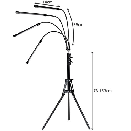 Pateicoties integrētam 4/8/12 h taimerim, atmiņas funkcijai un 10 pakāpju spilgtuma regulācijai, jūs viegli iestatīsiet ideālus apstākļus dažādām augšanas fāzēm – no dēstiem un spraudeņiem līdz ziedošiem un ražojošiem augiem. Stabils teleskopisks statīvs ar plašu augstuma diapazonu nodrošina ērtu izvietojumu interjerā un siltumnīcā.