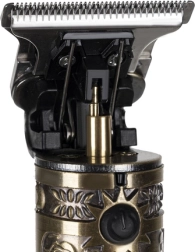 Elegants, pilnībā metāla korpuss ar oldschool gravējumu, T‑asmens precīzai apmalei un jaudīgs motors padara šo trimmeri par ideālu rīku gan mājas, gan profesionālam stilam. LCD displejs skaidri rāda akumulatora stāvokli, lai jauda vienmēr būtu jūsu kontrolē.