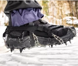 Nerūsējošās ķēdītes un 12 tērauda naglas katrai pēdai nodrošina maksimālu saķeri ziemas apstākļos — pilsētā, uz takām vai kalnos.
