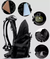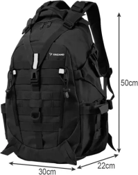 Meklējat uzticamu un izturīgu mugursomu, kas labi kalpos pārgājienos, ceļojumos un pilsētā? Šī melnā 25 l mugursoma apvieno militārus elementus ar lielisku ergonomiku. Tai ir liela galvenā kamera ar ērtu piekļuvi ar rāvējslēdzēju, iekšēja plakana kabata ar līplenti un četras ārējās kabatas (2 priekšā ar rāvējslēdzēju, 2 sānos) ērtai ekipējuma pārskatāmībai. Komplektā ir lietus pārvalks ar IPX1 aizsardzību, kas pasargā mugursomu lietū.
