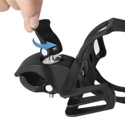 Turētāju var viegli piestiprināt pie velosipēda, skrejriteņa vai cita transportlīdzekļa, izmantojot klipša tipa skavu. Montāža aizņem tikai dažas minūtes.