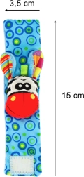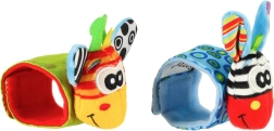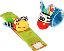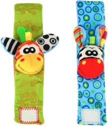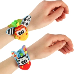 Komplektā ietilpst 2 gabali – zilā un zaļā krāsā – daudzveidīgām rotaļām mājās un ceļā. Izstrādājums ir no droša poliestera un atbilst CE sertifikācijai. Ideāli agrīnam periodam, kad bērns atklāj savas rociņas un mācās tās mērķtiecīgi izmantot.