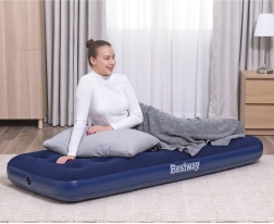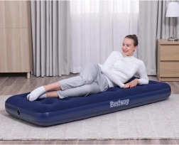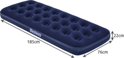 Praktisks uzpūšams matracis vienai personai ar izmēriem 185 × 76 × 22 cm no zīmola BESTWAY ir ideāli piemērots mājās un ceļā. Tam ir patīkama velūra virsma, izturīga coil-beam konstrukcija, drošības vārsts ērtai piepūšanai un izlaidei, kā arī iepakojumā atradīsiet pašlīmējošu ielāpu.