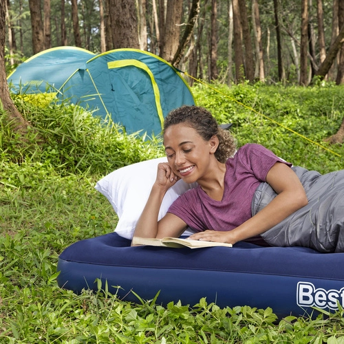 Izbaudiet ērtu miegu jebkur – uzpūšamais matracis BESTWAY ar samtaini mīkstu velūra virsmu ir patīkams pieskārienam un labāk notur palagu. Izturīgā coil‑beam konstrukcija nodrošina stabilitāti un elastību, tāpēc matracis saglabā formu un labi atbalsta ķermeni.