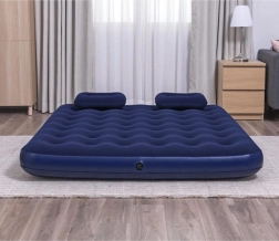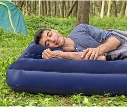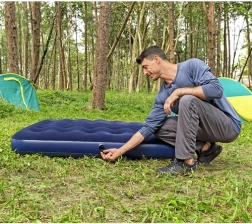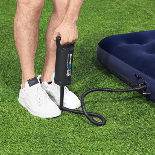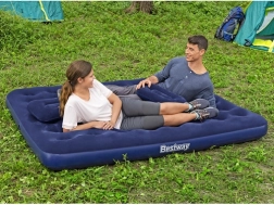 Praktiskie vārsti ātrai piepūšanai un gaisa nolaišanai taupa laiku, izturīgais vinils (PVC) no iepriekš testēta materiāla garantē ilgmūžību. Komplektā ir viss nepieciešamais: Air Hammer rokas pumpis, 2 spilveni un pašlīmējoša ielāpa nelieliem remontiem.