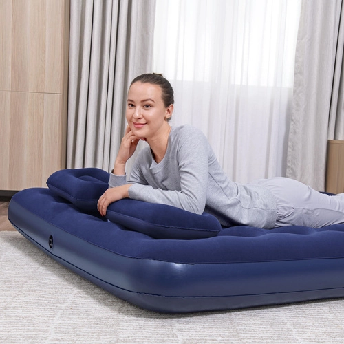 Izbaudiet ērtības jebkur – divvietīgais matracis BESTWAY Queen ar izmēriem 203 × 152 × 22 cm ir ideāli piemērots gan telpām, gan teltij. Mīkstā velūra virsma ir patīkama pieskārienam, savukārt iekšējā Coil‑Beam konstrukcija atdarina klasiskā matrača atsperes un nodrošina stabilitāti un vienmērīgu svara sadalījumu.