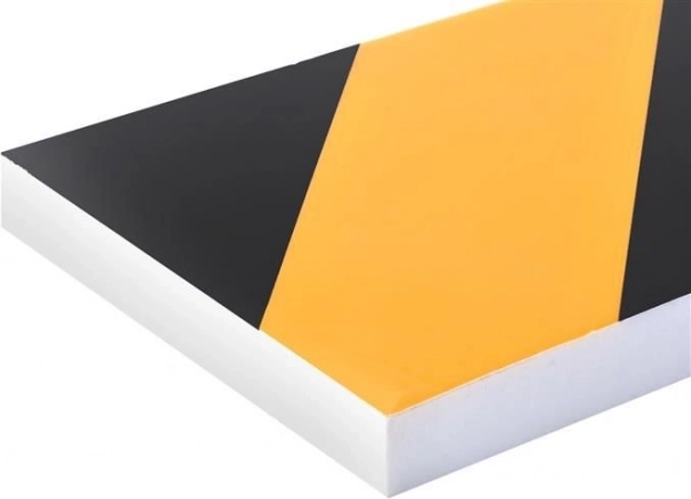 Dzelteni–melnas diagonālas svītras kalpo kā optisks brīdinājums un atvieglo attāluma novērtēšanu līdz sienai.