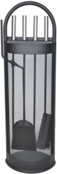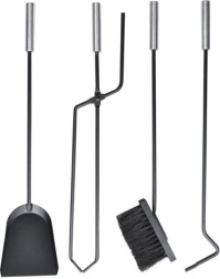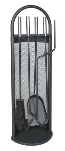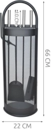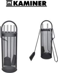 Komplektā ir viss, kas nepieciešams drošai un tīrai kamīna apkalpošanai: āķis/pokers, knaibles, lāpstiņa, birste un statīvs ar aizsargpārsegu un rokturi ērtai pārvietošanai. Robusts tērauds un kvalitatīvs izpildījums garantē ilgu kalpošanas laiku, savukārt statīva pamatne savāc putekļus un pelnus, lai jūsu mājoklis paliktu tīrs.